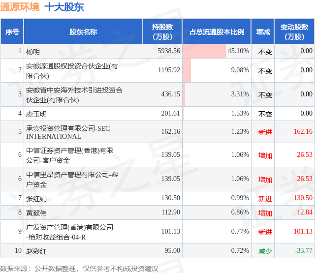 根据通源环境2025年三季报公布的十大股东详情如下: