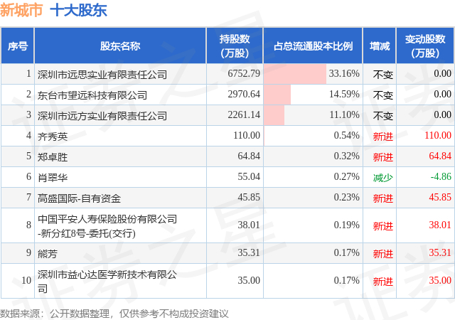根据新城市2025年三季报公布的十大股东详情如下: