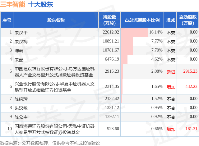 根据三丰智能2025年三季报公布的十大股东详情如下: