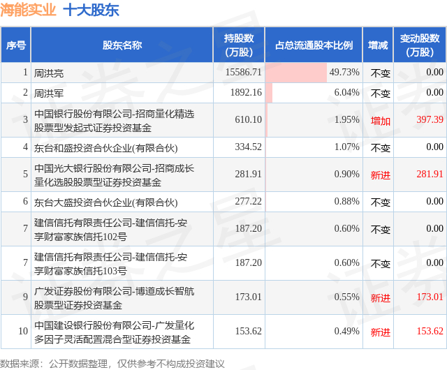 根据海能实业2025年三季报公布的十大股东详情如下: