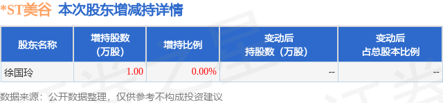 证券之星消息,1月4日*ST美谷发布公告《*ST美谷:简式权益变动报告书(信美通成)》,其股东徐国玲于2025年11月14日合计增持1.0万股,占公司目前总股本的0.0013%,变动期间该股股价上涨0.0%,截止11月14日收盘报4.77元。