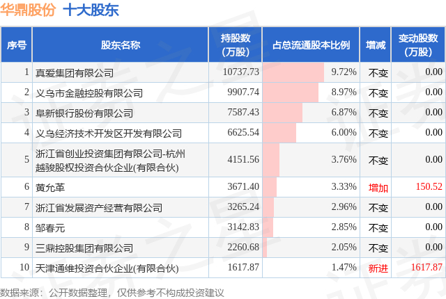 根据华鼎股份2025年三季报公布的十大股东详情如下: