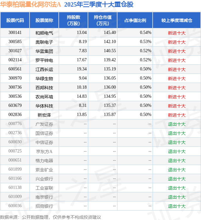 华泰柏瑞量化阿尔法A的前十大重仓股如下: