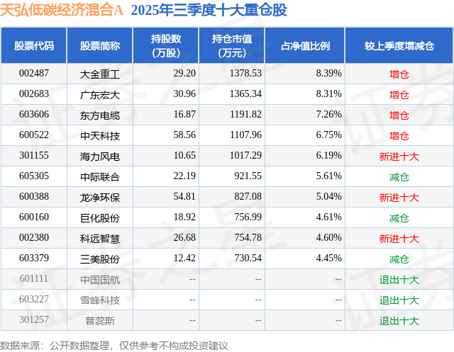 根据2025基金Q3季报公募基金重仓股数据,重仓该股的公募基金共2家,其中持有数量最多的公募基金为天弘基金的天弘低碳经济混合A。天弘低碳经济混合A目前规模为0.58亿元,最新净值1.1337(1月7日),较上一交易日下跌0.87%,近一年上涨44.04%。该公募基金现任基金经理为唐博。唐博在任的基金产品包括:天弘优势企业混合发起A,管理时间为2024年8月16日至今,期间收益率为51.38%;天弘周期策略混合A,管理时间为2024年9月26日至今,期间收益率为49.14%。