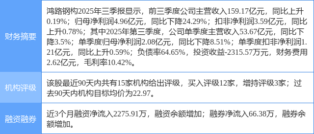 2025年10月28日,中邮证券研究员赵洋发布了对鸿路钢构的研报《Q3盈利触底回升,新签订单稳步增长》,该研报对鸿路钢构给出“买入”评级。证券之星数据中心根据近三年发布的研报数据计算,该研报作者对此股的盈利预测准确度为63.66%。