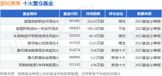 重仓爱科赛博的公募基金请见下表: