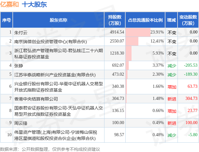 根据亿嘉和2025年三季报公布的十大股东详情如下: