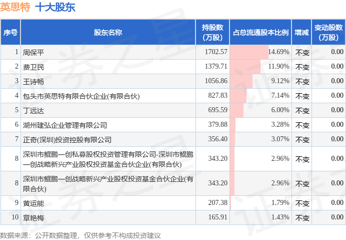 根据英思特2025年三季报公布的十大股东详情如下: