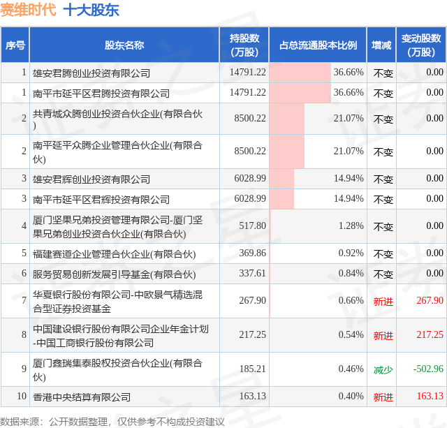 根据赛维时代2025年三季报公布的十大股东详情如下: