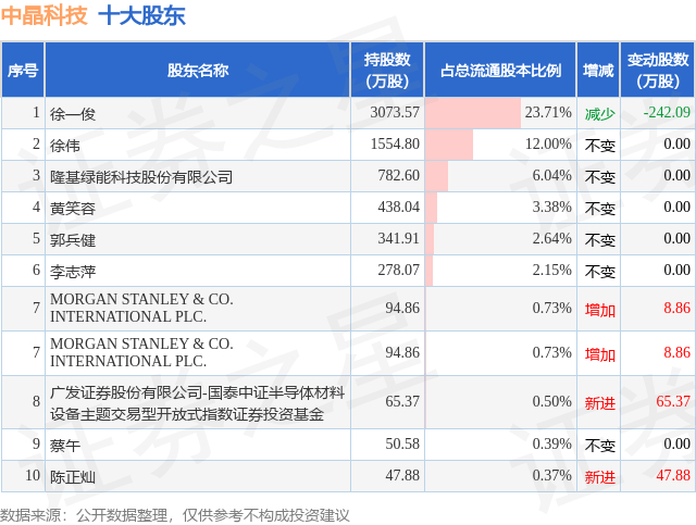 根据中晶科技2025年三季报公布的十大股东详情如下: