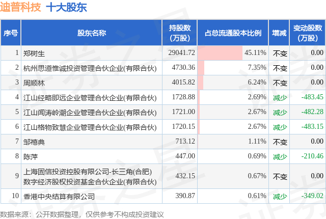 根据迪普科技2025年三季报公布的十大股东详情如下: