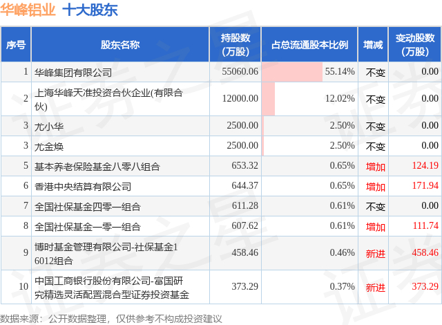 根据华峰铝业2025年三季报公布的十大股东详情如下: