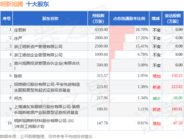 根据明新旭腾2025年三季报公布的十大股东详情如下:
