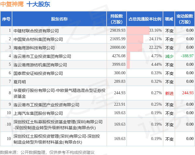 根据中复神鹰2025年三季报公布的十大股东详情如下: