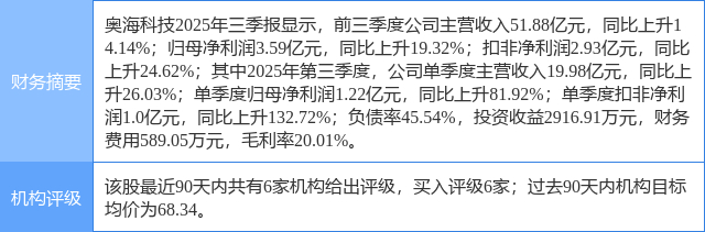 2025年10月29日,民生证券研究员方竞,卢瑞琪发布了对奥海科技的研报《2025年三季报点评:业绩稳健增长,数据中心电源加速落地》,该研报对奥海科技给出“买入”评级。研报中预计公司25-27年营收分别为79.34/100.77/126.66亿元,归母净利润分别为5.88/8.00/10.61亿元,对应PE分别为23/17/13倍,维持“推荐”评级。证券之星数据中心根据近三年发布的研报数据计算,该研报作者对此股的盈利预测准确度为51.45%。