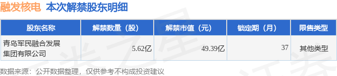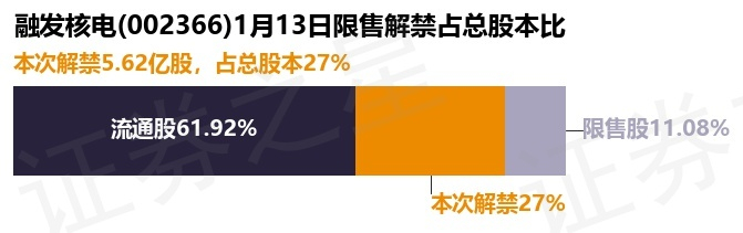 证券之星消息,根据市场公开信息整理,融发核电(002366)于1月13日将有5.62亿股限售股份解禁,为公司其他类型,占公司总股本27.0%。(本次数据根据历史公告整理得出,实际情况以上市公司最新公告为准)最近一年内,该股累计解禁3210.03万股,占总股本的1.54%。本次解禁后,公司还有2.31亿股限售股份,占总股本11.08%。具体如下图所示: