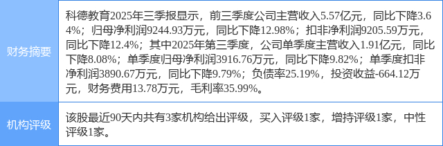 2025年10月28日,信达证券研究员范欣悦发布了对科德教育的研报《25Q3点评:有望受益于中昊芯英的资本运作》,该研报对科德教育给出“买入”评级。证券之星数据中心根据近三年发布的研报数据计算,该研报作者对此股的盈利预测准确度为78.72%。