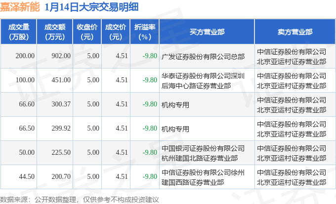 证券之星消息,1月14日嘉泽新能发生大宗交易,交易数据如下: