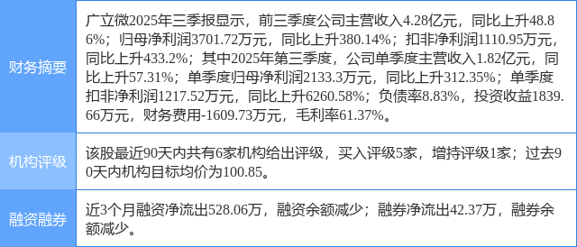 2025年11月11日,中邮证券研究员翟一梦,吴文吉发布了对广立微的研报《营收持续高增,化合物WLBI发布》,该研报对广立微给出“买入”评级。研报中预计公司2025-2027年分别实现收入7.2/9.4/12.3亿元,归母净利润1.2/1.9/2.9亿元,给予“买入”评级。证券之星数据中心根据近三年发布的研报数据计算,该研报作者对此股的盈利预测准确度为40.63%。
