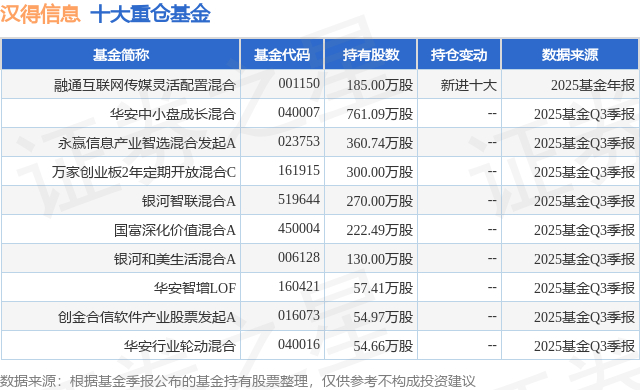 重仓汉得信息的前十大公募基金请见下表: