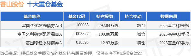 重仓香山股份的公募基金请见下表: