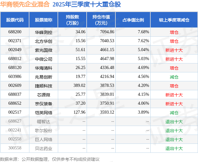 根据2025基金Q3季报公募基金重仓股数据,重仓该股的公募基金共11家,其中持有数量最多的公募基金为华商基金的华商领先企业混合。华商领先企业混合目前规模为9.24亿元,最新净值0.8491(1月15日),较上一交易日上涨2.41%,近一年上涨65.97%。该公募基金现任基金经理为刘力。刘力在任的基金产品包括:华商新动力混合A,管理时间为2022年5月19日至今,期间收益率为103.84%;华商改革创新股票A,管理时间为2023年1月10日至今,期间收益率为68.88%;华商数字经济混合A,管理时间为2024年6月25日至今,期间收益率为106.88%;