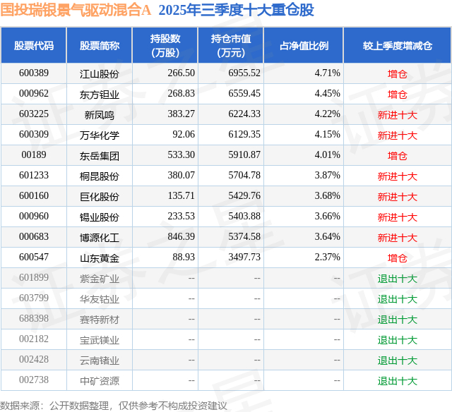 国投瑞银景气驱动混合A的前十大重仓股如下: