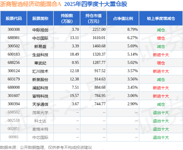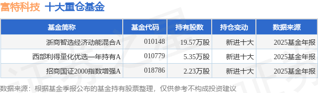 根据2025基金年报公募基金重仓股数据,重仓该股的公募基金共3家,其中持有数量最多的公募基金为浙商基金的浙商智选经济动能混合A。浙商智选经济动能混合A目前规模为0.4亿元,最新净值0.8132(1月20日),较上一交易日下跌2.26%,近一年上涨30.93%。该公募基金现任基金经理为白玉 柴明。白玉在任的基金产品包括:浙商大数据智选消费混合A,管理时间为2022年1月13日至今,期间收益率为-22.99%;浙商全景消费混合A,管理时间为2025年8月28日至今,期间收益率为-5.7%;浙商中华预期高股息A,管理时间为2025年8月28日至今,期间收益率为4.55%。