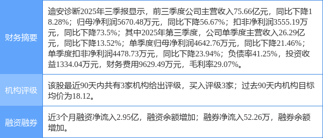 2025年10月31日,中国银河研究员程培,孟熙发布了对迪安诊断的研报《2025年三季报业绩点评:经营质量持续回升,创新业务模式深化》,该研报对迪安诊断给出“买入”评级。证券之星数据中心根据近三年发布的研报数据计算,该研报作者对此股的盈利预测准确度为0.76%。
