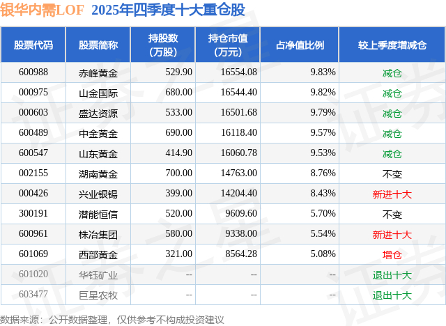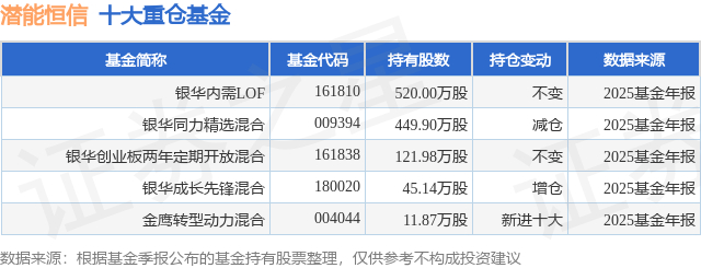 根据2025基金年报公募基金重仓股数据,重仓该股的公募基金共5家,其中持有数量最多的公募基金为银华基金的银华内需LOF。银华内需LOF目前规模为16.85亿元,最新净值5.025(1月21日),较上一交易日上涨5.43%,近一年上涨104.1%。该公募基金现任基金经理为王利刚。王利刚在任的基金产品包括:银华成长先锋混合,管理时间为2019年12月31日至今,期间收益率为44.92%;银华创业板两年定期开放混合,管理时间为2020年8月7日至今,期间收益率为-14.33%;银华同力精选混合,管理时间为2021年4月26日至今,期间收益率为51.69%;
