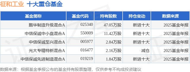 重仓征和工业的公募基金请见下表: