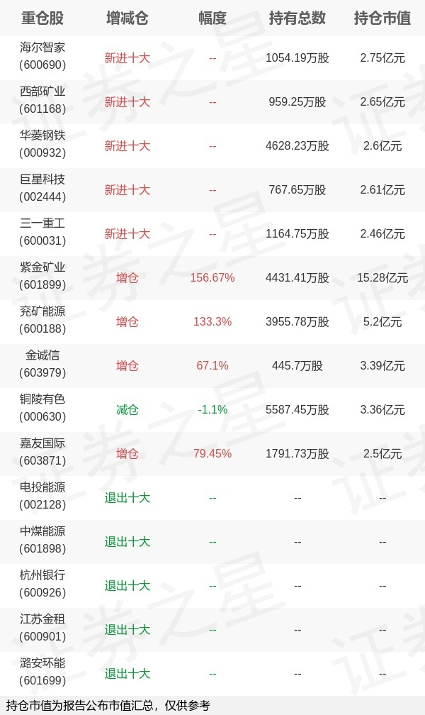 证券之星消息,1月22日景顺长城基金旗下李怡文 邹立虎 李曾卓卓管理的景顺长城景盛双息收益债券型基金公布年报,近1年净值增长率11.27%。与上一季度相比,该基金前十大重仓股新增海尔智家,西部矿业,华菱钢铁,巨星科技,三一重工;并对紫金矿业增仓2704.88万股,为该基金第一大重仓股;电投能源,中煤能源,杭州银行,江苏金租,潞安环能等退出前十大重仓股;详细数据如下: