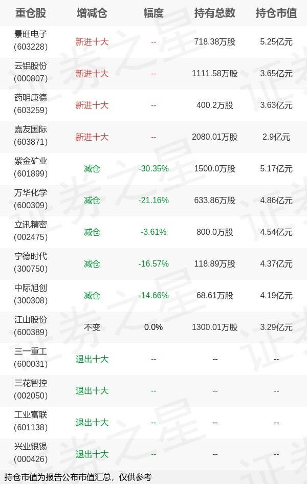 证券之星消息,1月22日中欧基金旗下周蔚文 罗佳明管理的中欧时代先锋股票型发起式基金公布年报,近1年净值增长率63.85%。与上一季度相比,该基金前十大重仓股新增景旺电子,云铝股份,药明康德,嘉友国际;其中景旺电子持仓占比4.79%,为该基金第一大重仓股;三一重工,三花智控,工业富联,兴业银锡等退出前十大重仓股;详细数据如下: