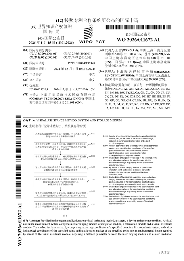 证券之星消息,根据企查查数据显示司南导航(688592)公布了一项国际专利申请,专利名为“视觉辅助方法、系统及存储介质”,专利申请号为PCT/CN2024/136348,国际公布日为2026年1月15日。