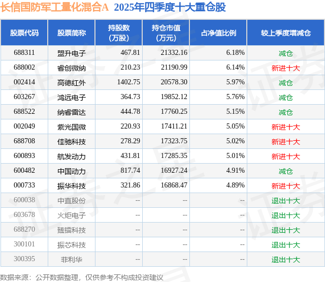 根据2025基金年报公募基金重仓股数据,重仓该股的公募基金共4家,其中持有数量最多的公募基金为长信基金的长信国防军工量化混合A。长信国防军工量化混合A目前规模为9.55亿元,最新净值1.9921(1月23日),较上一交易日上涨2.35%,近一年上涨76.64%。该公募基金现任基金经理为宋海岸。宋海岸在任的基金产品包括:长信中证500指数增强A,管理时间为2018年2月12日至今,期间收益率为143.7%;长信沪深300指数增强A,管理时间为2019年5月16日至今,期间收益率为87.79%;长信先进装备三个月持有混合A,管理时间为2021年11月29日至今,期间收益率为-2.11%。