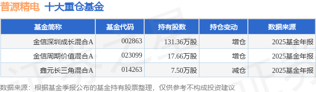 重仓普源精电的公募基金请见下表: