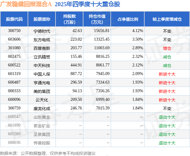 广发稳健回报混合A的前十大重仓股如下: