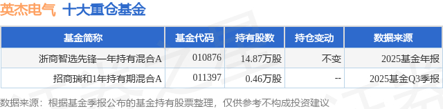 重仓英杰电气的公募基金请见下表:
