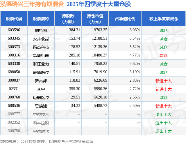 根据2025基金年报公募基金重仓股数据,重仓该股的公募基金共27家,其中持有数量最多的公募基金为泓德基金的泓德瑞兴三年持有期混合。泓德瑞兴三年持有期混合目前规模为21.99亿元,最新净值1.2577(1月27日),较上一交易日上涨0.31%,近一年上涨31.19%。该公募基金现任基金经理为王克玉。王克玉在任的基金产品包括:泓德优选成长混合,管理时间为2015年10月9日至今,期间收益率为184.27%;泓德优势领航混合,管理时间为2016年12月21日至今,期间收益率为129.6%;泓德研究优选混合,管理时间为2019年5月27日至今,期间收益率为121.34%;