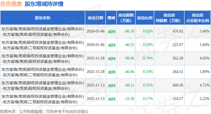 该股近半年内有股东持股变动,合计净减持343.35万股,股东增减持明细如下表: