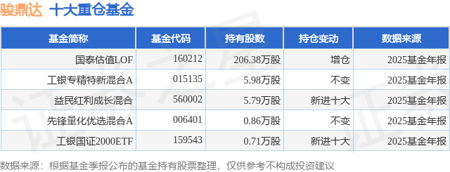 重仓骏鼎达的公募基金请见下表: