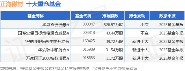 重仓正海磁材的公募基金请见下表: