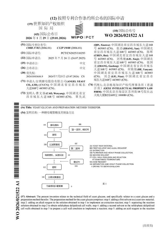 证券之星消息,根据企查查数据显示安琪酵母(600298)公布了一项国际专利申请,专利名为“一种酵母葡聚糖及其制备方法”,专利申请号为PCT/CN2025/110293,国际公布日为2026年1月29日。