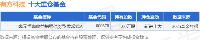 根据2025基金年报公募基金重仓股数据,重仓该股的公募基金共1家,其中持有数量最多的公募基金为鑫元基金的鑫元恒鑫收益增强债券型发起式A。鑫元恒鑫收益增强债券型发起式A目前规模为0.19亿元,最新净值1.1375(1月30日),较上一交易日下跌0.48%,近一年上涨8.61%。该公募基金现任基金经理为曹建华。曹建华在任的基金产品包括:鑫元双债增强债券A,管理时间为2021年9月28日至今,期间收益率为12.32%;鑫元增利定开债发起式,管理时间为2021年9月28日至今,期间收益率为12.2%;鑫元皓利一年定期开放债券,管理时间为2022年3月15日至今,期间收益率为11.08%。