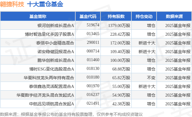 根据2025基金年报公募基金重仓股数据,重仓该股的公募基金共25家,其中持有数量最多的公募基金为银河基金的银河创新成长混合A。银河创新成长混合A目前规模为114.58亿元,最新净值10.2297(1月30日),较上一交易日上涨1.95%,近一年上涨62.82%。该公募基金现任基金经理为郑巍山。郑巍山在任的基金产品包括:银河和美生活混合A,管理时间为2020年2月17日至今,期间收益率为34.38%;银河产业动力混合A,管理时间为2022年3月17日至今,期间收益率为45.18%;银河智联混合A,管理时间为2022年3月17日至今,期间收益率为70.1%。