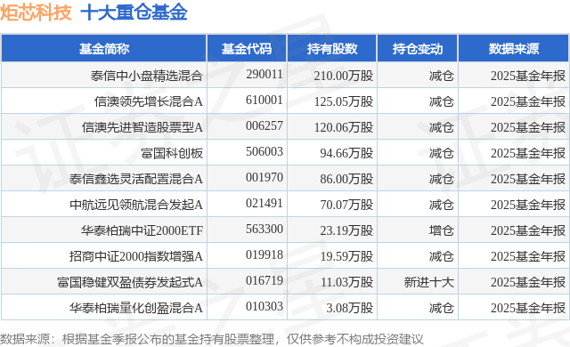 重仓炬芯科技的前十大公募基金请见下表: