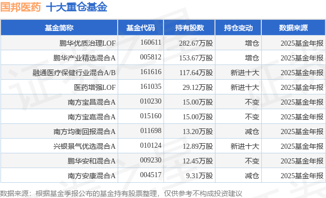 重仓国邦医药的前十大公募基金请见下表: