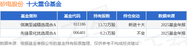 根据2025基金年报公募基金重仓股数据,重仓该股的公募基金共2家,其中持有数量最多的公募基金为信达澳亚基金的信澳至诚精选混合A。信澳至诚精选混合A目前规模为3.39亿元,最新净值0.5945(1月30日),较上一交易日上涨2.18%,近一年上涨33.75%。该公募基金现任基金经理为齐兴方。齐兴方在任的基金产品包括:信澳领先增长混合A,管理时间为2021年12月17日至今,期间收益率为5.56%;信澳先进智造股票型A,管理时间为2022年11月14日至今,期间收益率为27.82%;信澳高端装备混合A,管理时间为2025年11月11日至今,期间收益率为11.47%。