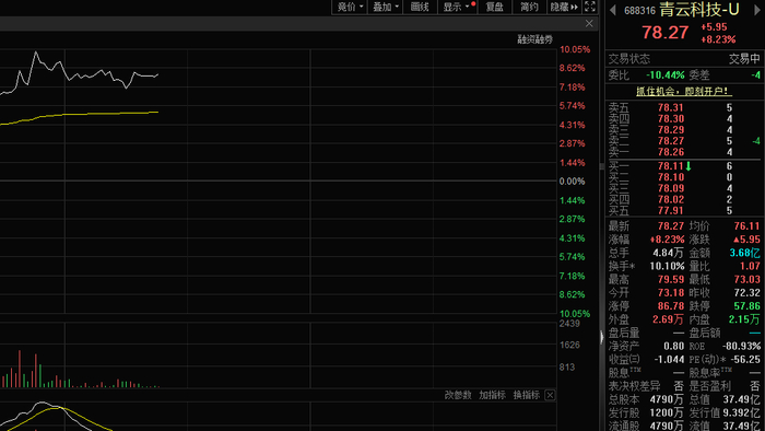 2月3日,青云科技(688316)股价大涨。截至发稿,股价涨幅超8%。