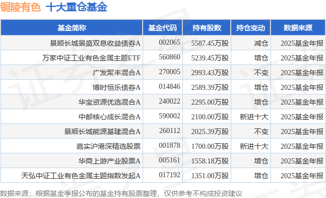 根据2025基金年报公募基金重仓股数据,重仓该股的公募基金共71家,其中持有数量最多的公募基金为景顺长城基金的景顺长城景盛双息收益债券A。景顺长城景盛双息收益债券A目前规模为350.42亿元,最新净值1.258(2月2日),较上一交易日下跌0.79%,近一年上涨10.64%。该公募基金现任基金经理为李怡文 邹立虎 李曾卓卓。李怡文在任的基金产品包括:景顺长城景颐双利债券A,管理时间为2021年4月30日至今,期间收益率为27.65%;景顺景颐招利6个月持有期债券A,管理时间为2021年4月30日至今,期间收益率为38.8%;景顺长城安泽回报一年持有混合A,管理时间为2021年4月30日至今,期间收益率为45.72%;景顺景颐嘉利6个月持有期债券A,管理时间为2021年6月16日至今,期间收益率为25.87%。邹立虎在任的基金产品包括:景顺长城安盈回报一年持有混合A,管理时间为2021年11月16日至今,期间收益率为56.52%;景顺景颐招利6个月持有期债券A,管理时间为2022年3月12日至今,期间收益率为30.93%;景顺长城华城稳健6个月持有期混合A,管理时间为2022年3月12日至今,期间收益率为35.52%。